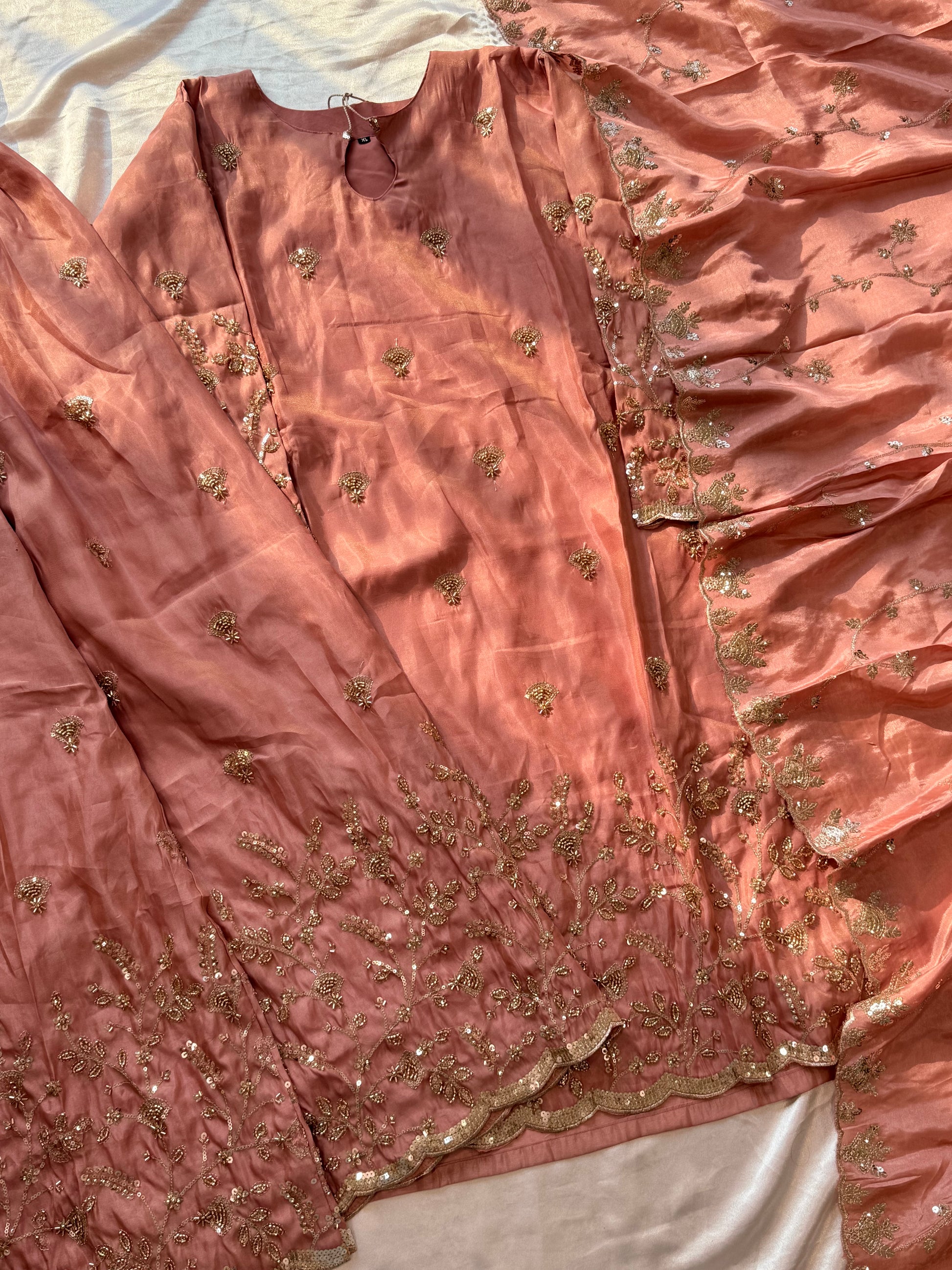 Cosmos silk Stitched plazo attached lining with handwork border... length 38
