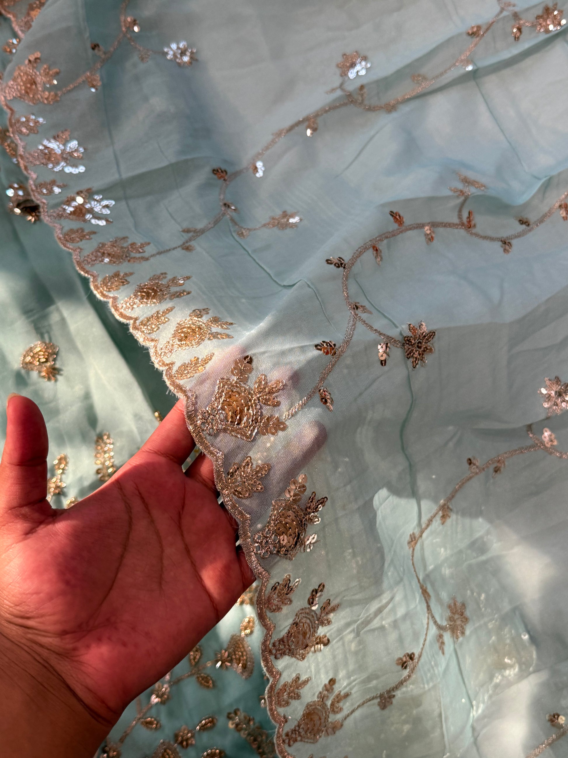 Cosmos silk Stitched plazo attached lining with handwork border... length 39