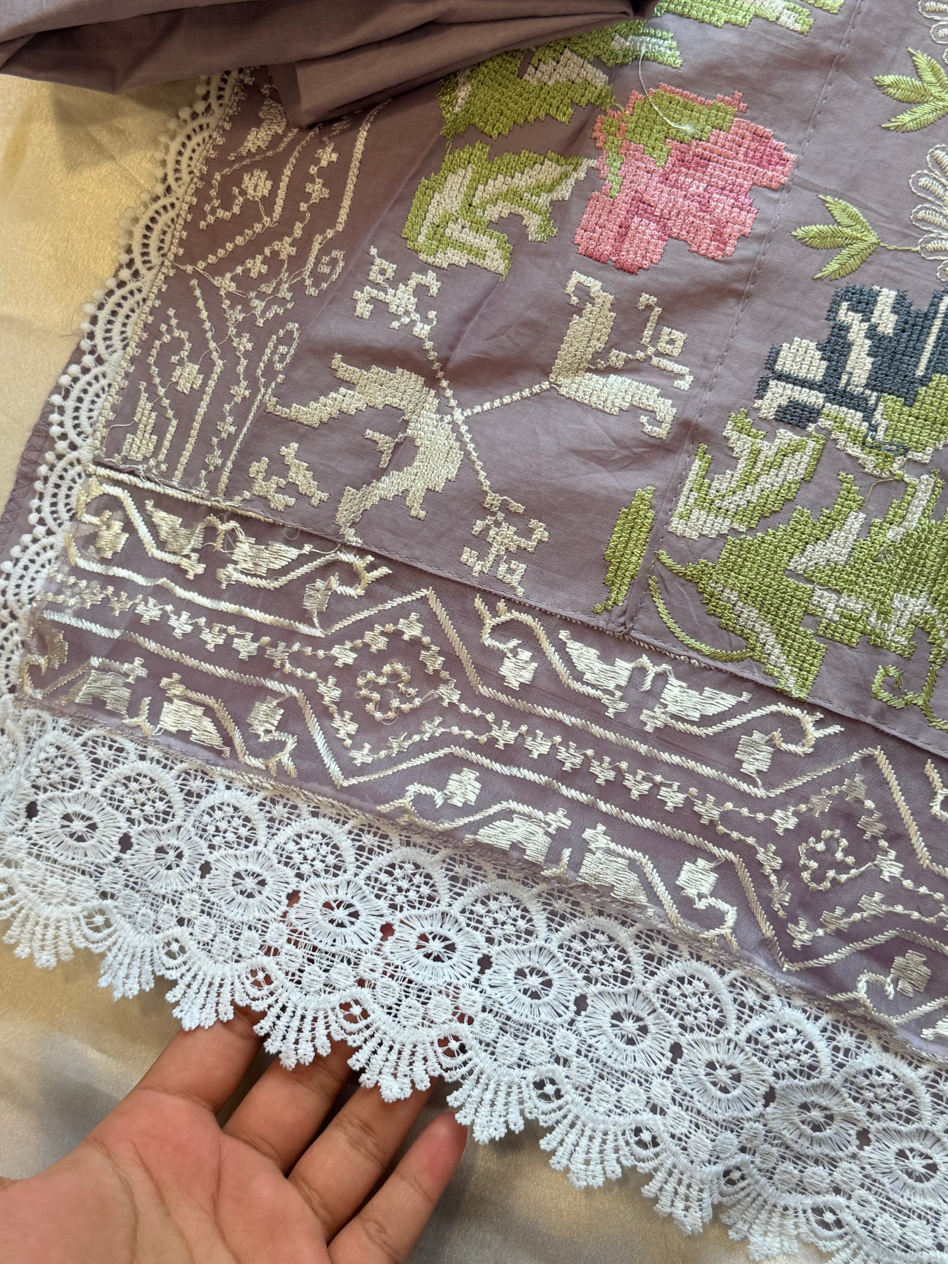 Cotton Bottom with self embroidery material