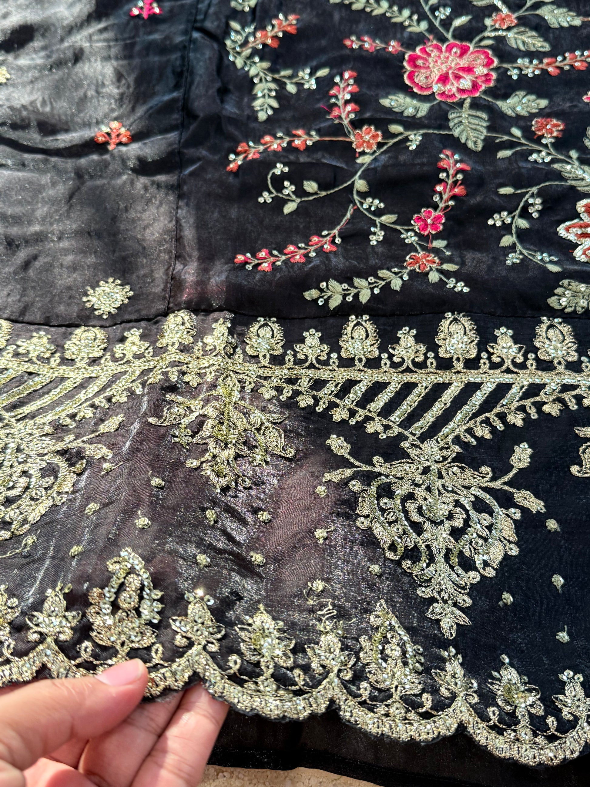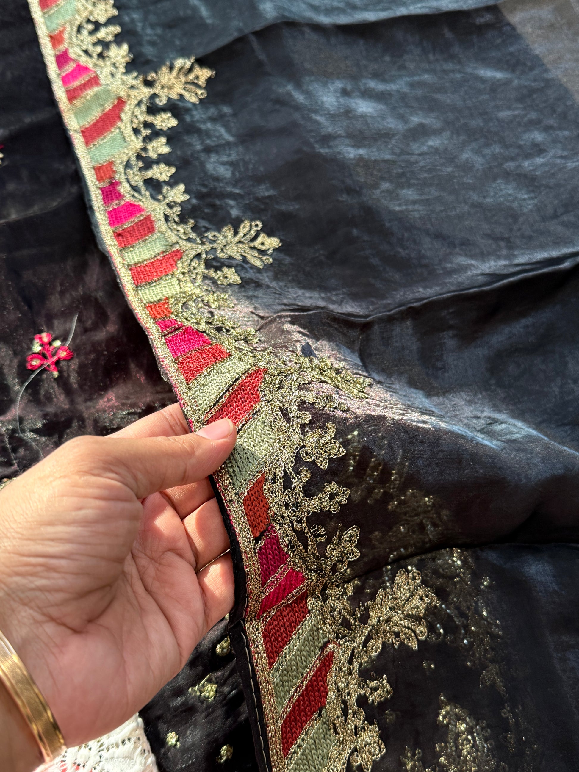 Organza dupatta with sequence and embroidery work