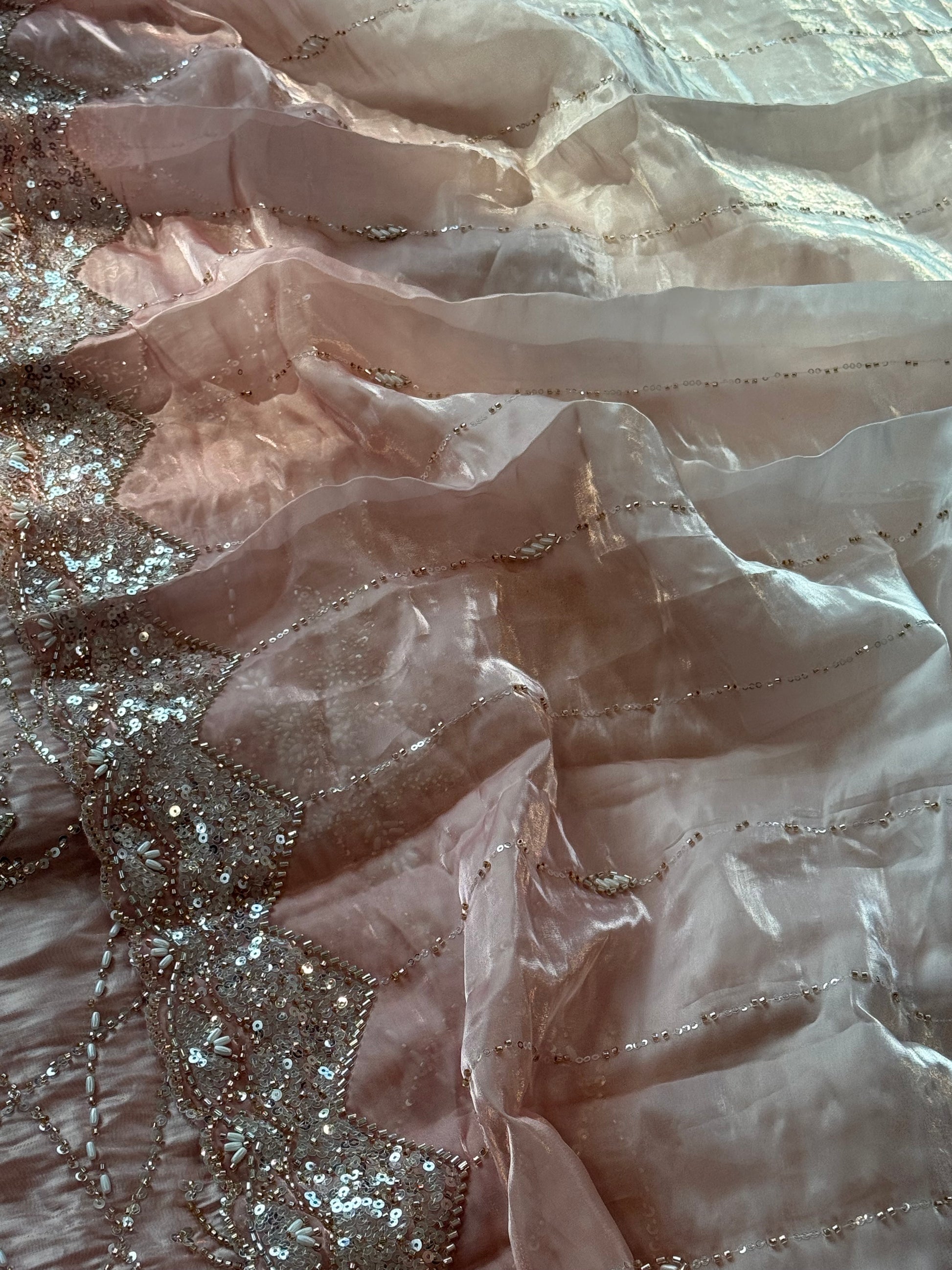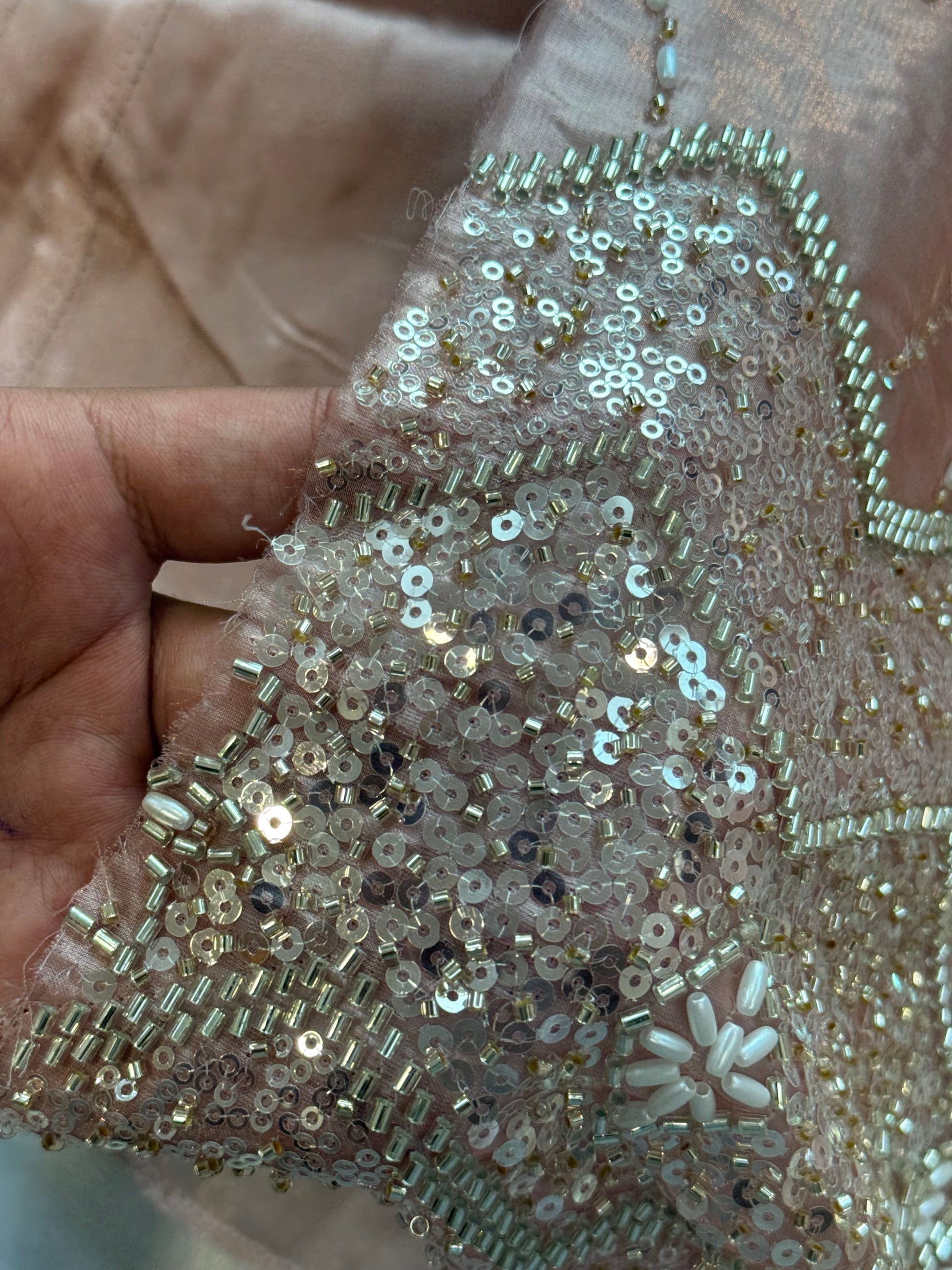 Top Pure Glass Organza material with heavy Handwork on Front with heavy boarder.....Pearl and Sequence work...Length 54 Inches....60 chest can be stitched